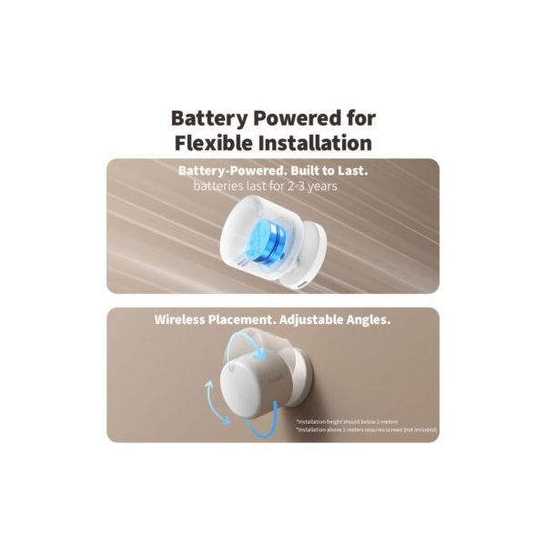 - Mounting/Placement: Wireless, can be placed on walls/shelves/flat surfaces; flexible positioning.