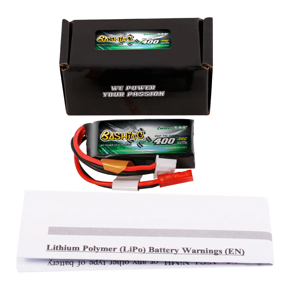 Description Gens Ace 400mAh 7.4V 2S1P 35C Lipo Battery Pack with JST-RCY Plug-Bashing Series Spec. Product Type: lipo battery pack  - Capacity: 400mAh  - Voltage: 7.4V  - Discharge Rate: 35C   - Weight: approx. 18g  - Dimensions: approx....