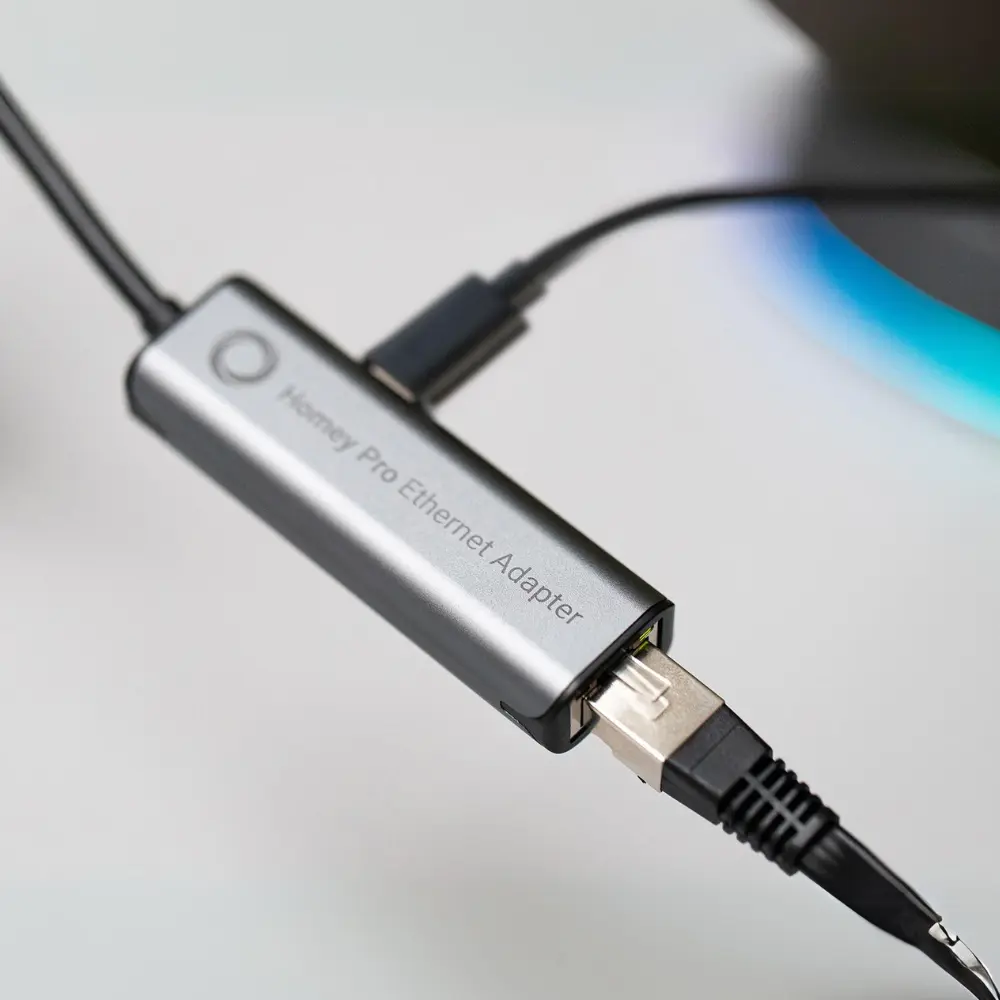 Without this adapter, the Homey Pro hub only supports Wi-Fi connectivity.