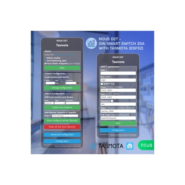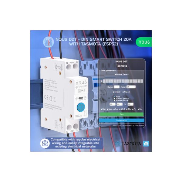 The NOUS D2T is an ideal choice for those looking for a reliable and versatile smart relay for their home automation needs that can be mounted on an electrical cabinet DIN rail, especially when integration with open source smart home systems or Matter-compliant systems is required.