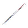 The unit measures just 48 × 13 × 7 mm and weighs just 14 g, making it easy to install even in confined spaces. The white housing and clearly marked cables (brown, blue, red, black) make installation quick and hassle-free. The cable length is 80 mm and the prepared 5 mm terminals allow for efficient connection to installation boxes.