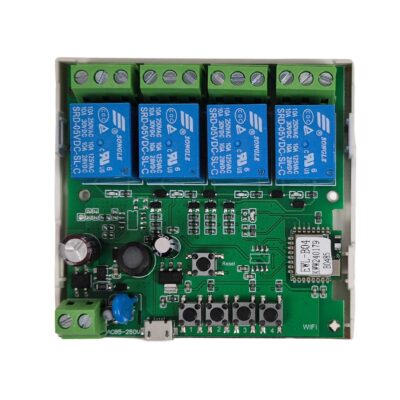 The SmartWise 4-circuit smart relay switch is an ideal solution for controlling gates, garage doors, or other devices. It can also be integrated into electrical circuits for remote control via the internet. It is especially suitable for motor control, where two or more directional movements are needed, as the relay module supports interlock mode (also called locking or toggle mode). This ensures that activating one circuit automatically deactivates the others.
